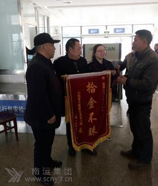 乘客王強(qiáng)給儀隴汽車客運(yùn)站贈(zèng)送“拾金不昧”的錦旗