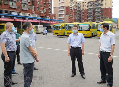 市交通運輸局黨委書記、局長楊積義(中)檢查了高坪汽車客運站“迎七一”建黨百年華誕前的安全生產(chǎn)和疫情防控工作。