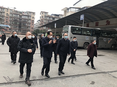 西充縣委書記張光全(左三)、西充縣委副書記、縣長鄧強(qiáng)(左二)深入西充汽車客運(yùn)中心檢查春運(yùn)安全生產(chǎn)工作。
