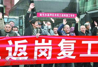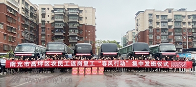 南充市高坪區(qū)農(nóng)民工返崗復(fù)工“春風(fēng)行動” 集中發(fā)班儀式在高坪汽車客運(yùn)站舉行
